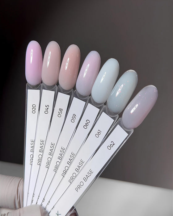 This is important because medium-acidity base is needed for adhesion to natural nails. Remember, leveling should not be performed with a medium-acidity base, only a thin layer should be used to prevent chemical burns. - Apply a thin or leveling layer of DARK PRO BASE. The layer thickness should not exceed 0.7 mm. Curing time is 60-90 seconds in an original lamp.