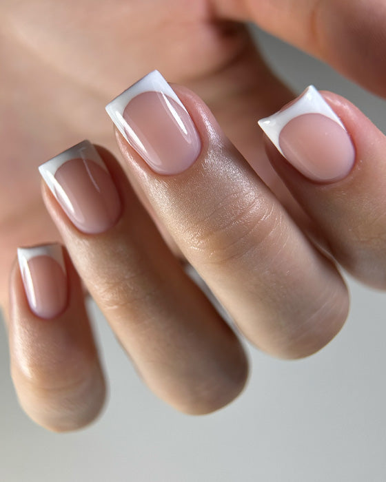 - Perform manicure, buff and degrease the nail, apply Ultrabond and Dehydrator.