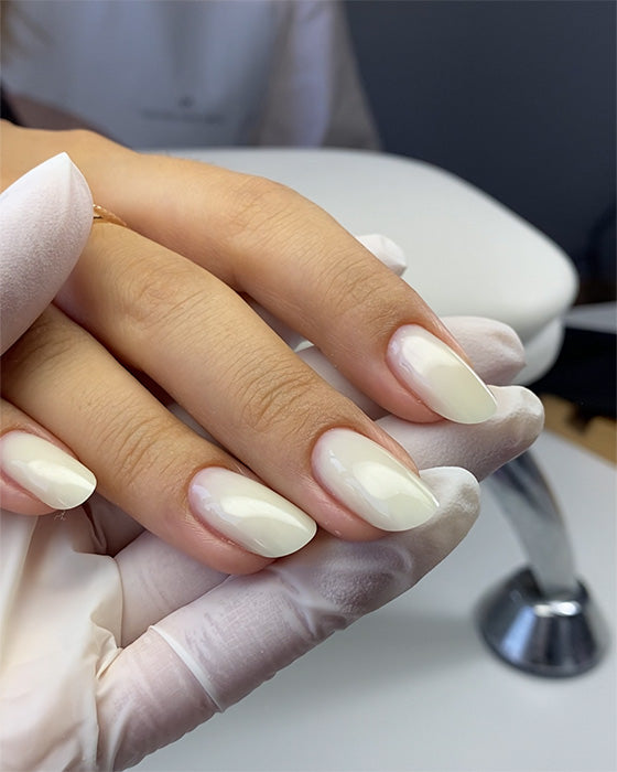 - Do a manicure, buff and degrease the nail, apply Ultrabond and Dehydrator.