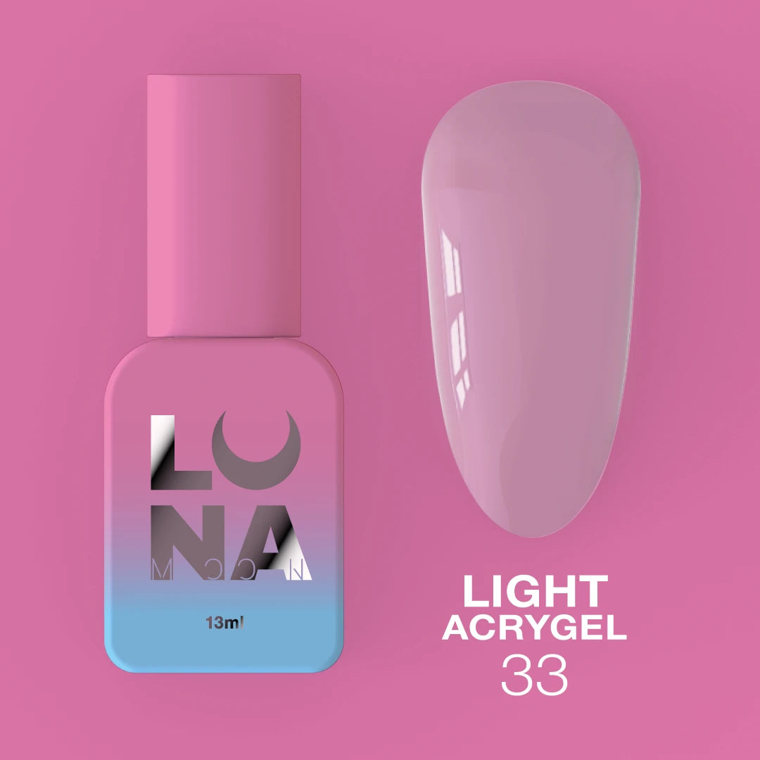 Light Acrygel is a symbiosis of polygel and base. It consists more than half (60-80%) of acrylic copolymer, the main component of polygel, and a small amount of hydroxyethyl methacrylate HEMA (about 20-30%), the main component of base coatings. It can completely replace bases.