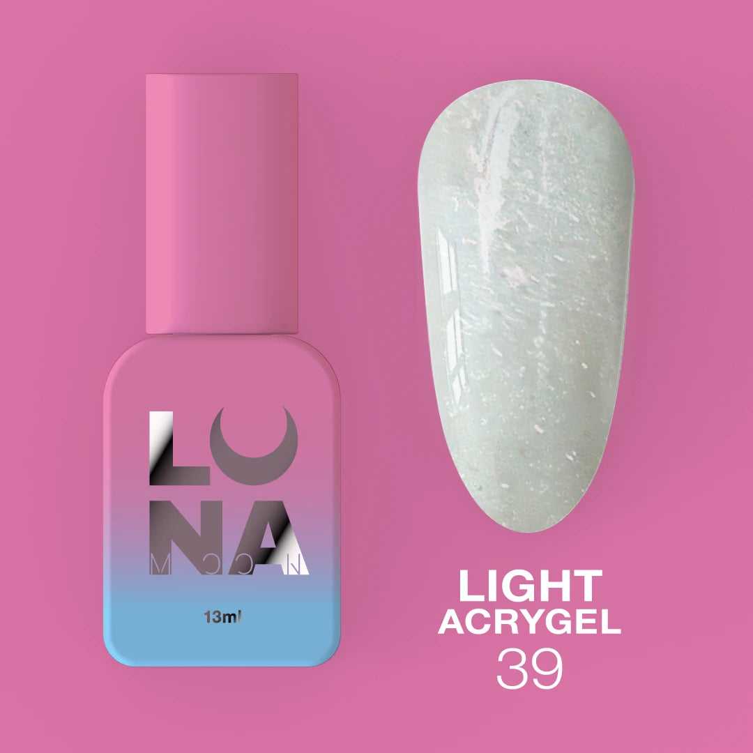 Light Acrygel is a symbiosis of polygel and base. It consists more than half (60-80%) of acrylic copolymer, the main component of polygel, and a small amount of hydroxyethyl methacrylate HEMA (about 20-30%), the main component of base coatings. It can completely replace bases.