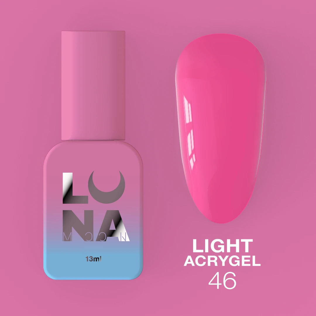 Light Acrygel is a symbiosis of polygel and base. It consists more than half (60-80%) of acrylic copolymer, the main component of polygel, and a small amount of hydroxyethyl methacrylate HEMA (about 20-30%), the main component of base coatings. It can completely replace bases.